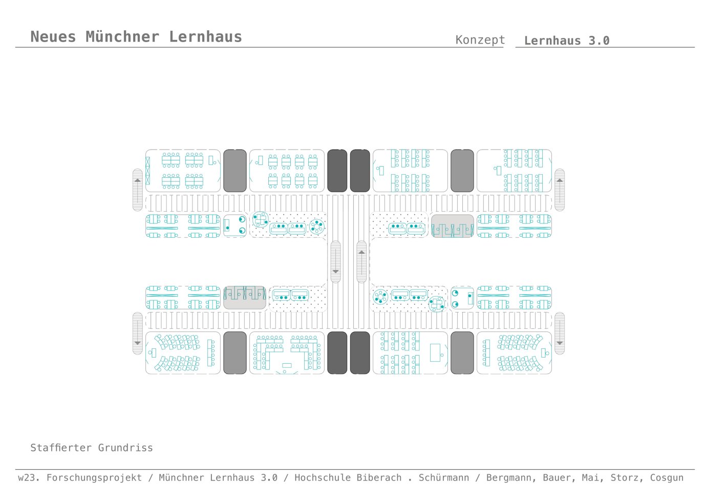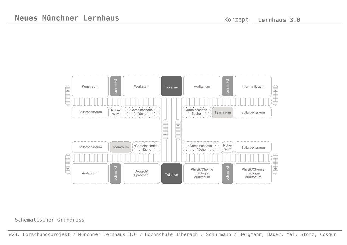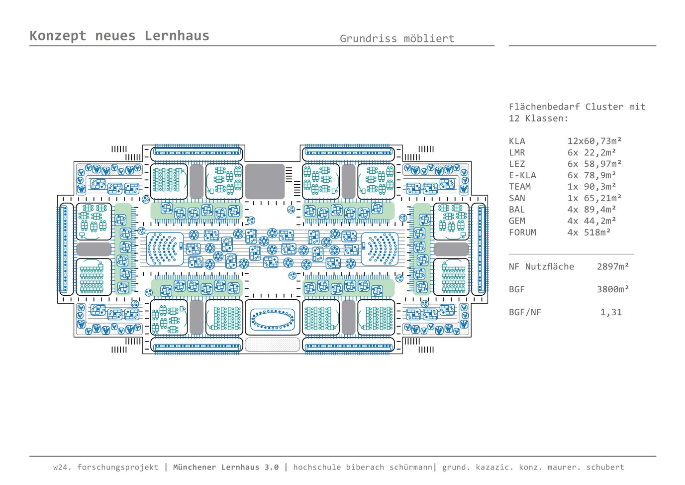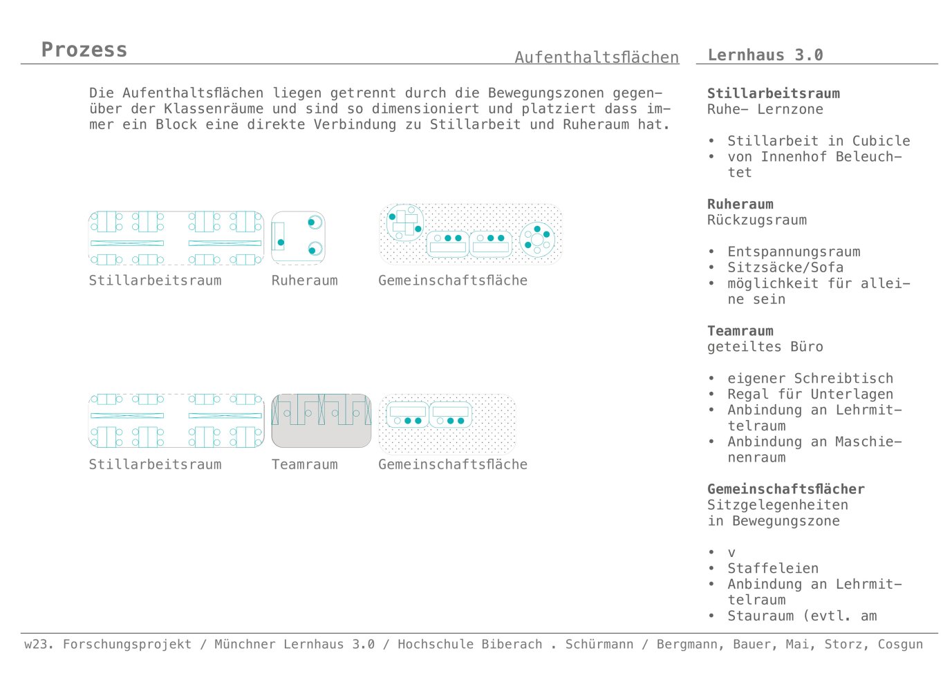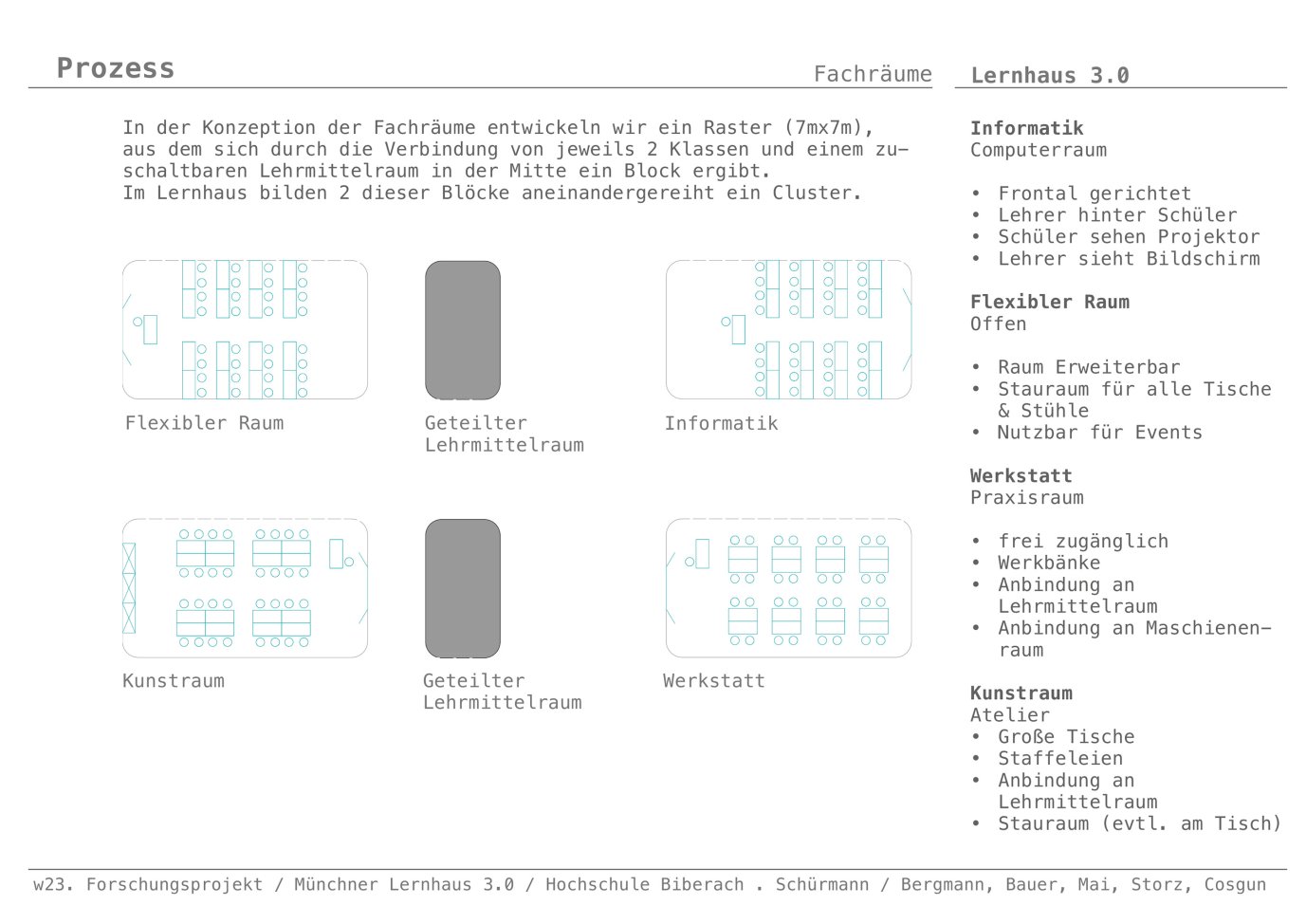 Es wurde untersucht, welche Lernsituationen in welchen Räumlichekeiten stattfinden können, welche fehlend sind und was dafür benötigt wird.