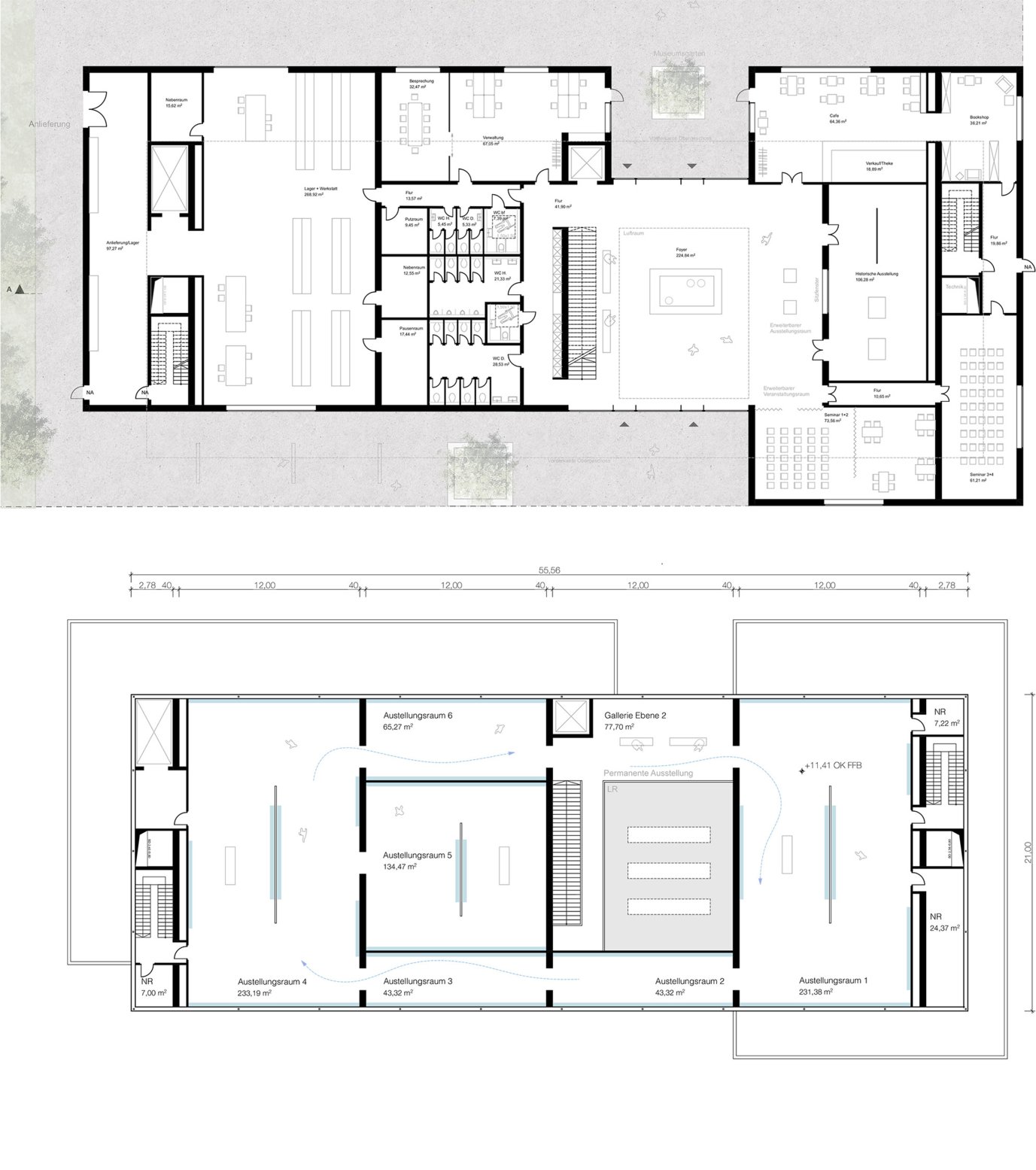 Dieses Projekt beschäftigt sich mit Frage des Sockels in der Stadt. Der Entwurf versucht dem massiven Sichtbetonsockel mit einzelnen großen Öffnungen, einen „schwebenden“ mit einer durchlaufenden transluzenten Hülle versehenen Ausstellungskörper gegenüberzustellen. Die klare konstruktive Gliederung in tragende Schotten, die auch die infrastrukturellen Themen beinhalten schaffen eine überzeugende räumliche Struktur, die einen vielfältigen Ausstellungsbetrieb ermöglicht.