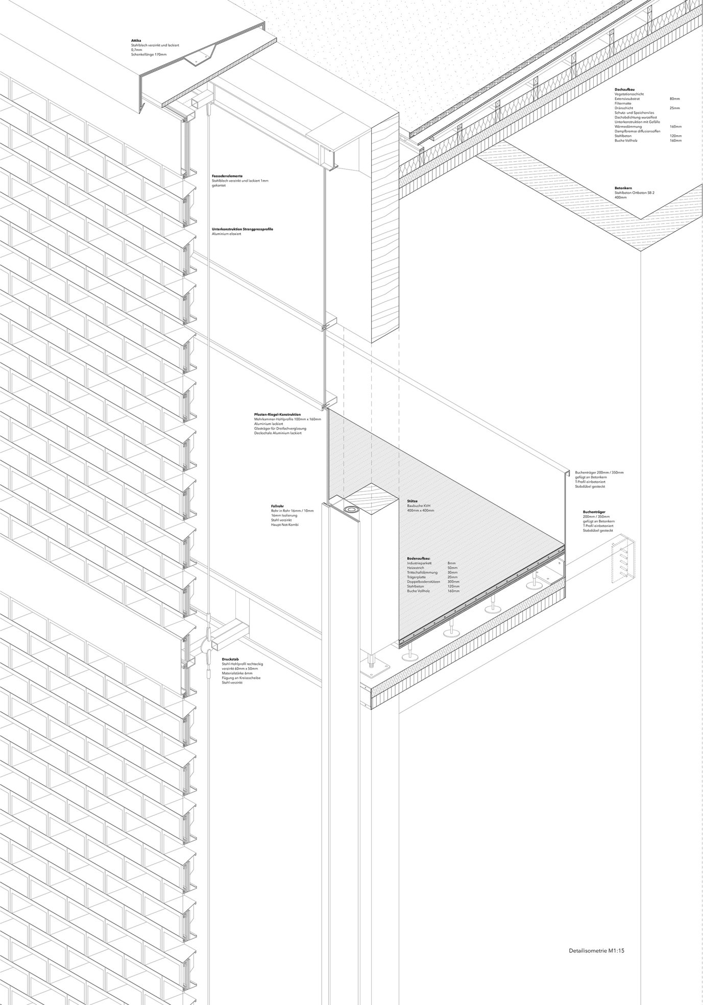 Dieses Projekt überzeugt durch seine räumlich komplexe Wegeführung durch das Gebäude. Drei frei stehende, tragende Kerne (in denen sich Erschließung und Technik befinden) gliedern die Flächen und ermöglichen unterschiedliche Raumzuschnitte über die 3 Geschosse. Vielfältige Ausstellungssituationen sind dadurch möglich.Eine zweite Hülle aus unterschiedlich gekanteten „Metallkacheln“ nehmen Bezug zum ursprünglich auf dem Grundstück befindlichen Hortenkaufhaus. Diese zweite Haut sorgt für unterschiedliche , der Nutzung angepasste Belichtungsverhältnisse, und geben dem Gebäude ein sehr eigenständiges Erscheinungsbild.