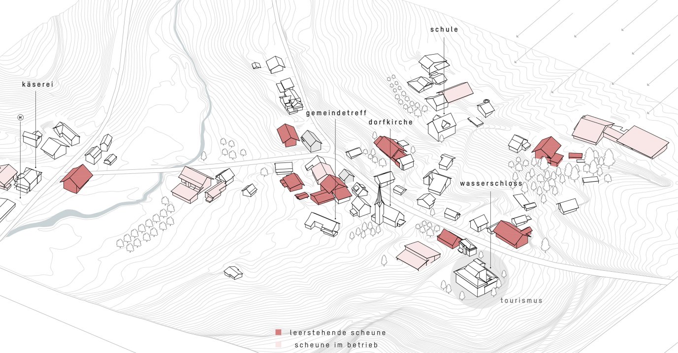 Weiler sind typische und prägende Elemente der Kulturlandschaft in der Schweiz, ihr primärer Zweck der Landwirtschaft verliert aber immer mehr an Kraft. Wie können die baukulturellen Qualitäten der gewachsenen Struktur nicht nur erhalten, sondern auch für die Zukunft angepasst werden? Wir möchten dieses Semester nutzen um freudvoll und kreativ an die Verdichtung im Weiler heranzugehen. Der historische Kontext bietet uns hierbei vielerlei Hilfestellung; Wir analysieren das Ortsbild, die Aussenräume, Baumbestände, das denkmalgeschützte Wasserschloss, Haupt-und Nebengebäude auf deren Bauweise und Materialierung, deren Ausdruck und erarbeiten mit der Nutzung eines Seminarzentrums eine innere Verdichtung des Ortes Hagenwil. Der Weiler Hagenwil ist Teil einer Moränenlandschaft, welche früher weit ausgedehnte Moore besass, von welchen heute noch zwei Moore übriggeblieben sind (Hudelmoos und Heldswiler). Im Weiler soll getagt und getanzt werden. Ein Umbau, Neubau oder Erweiterung schafft Raum für Seminargäste und die Dorfbewohnern einen Tanzsaal. Das Raumprogramm ist dabei sinnfällig mit den vorhandenen Strukturen und Angeboten im Weiler zu verteilen.
