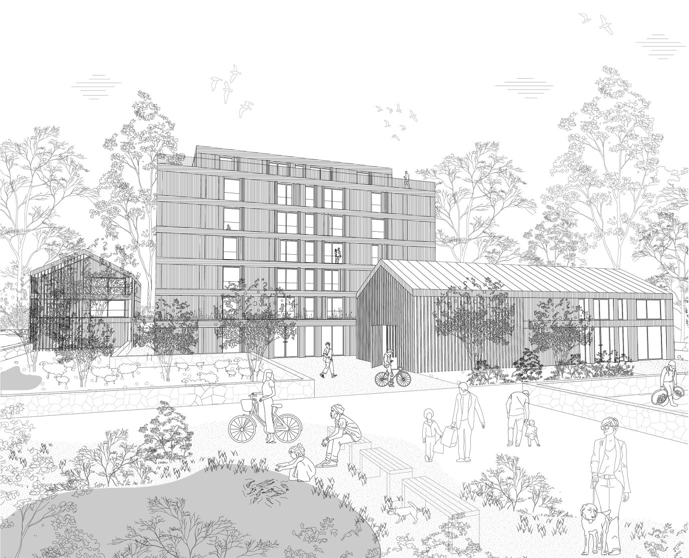 Civitas Rustica ist ein zukunftsorientiertes Wohn- und Landwirtschaftskonzept, das von der römischen Villa Rustica inspiriert ist, mit einem zentralen Wohnhaus und ergänzenden Nebengebäuden für Produktion und Gemeinschaft. In einem waldnahen Gebiet Rummelsburgs verbinden sich Wohnen, Landwirtschaft und gemeinschaftliches Leben nach Permakulturprinzipien. Durch geteilte Räume und Funktionen werden Ressourcen, Flächen und CO₂-Emissionen deutlich reduziert. Die Gebäude bestehen aus regionalen, natürlichen Materialien wie Holz aus Eberswalde und Kalkstein aus Rüdersdorf. Civitas Rustica zeigt, wie Stadt, Landwirtschaft und Gemeinschaft nachhaltig ineinandergreifen können.